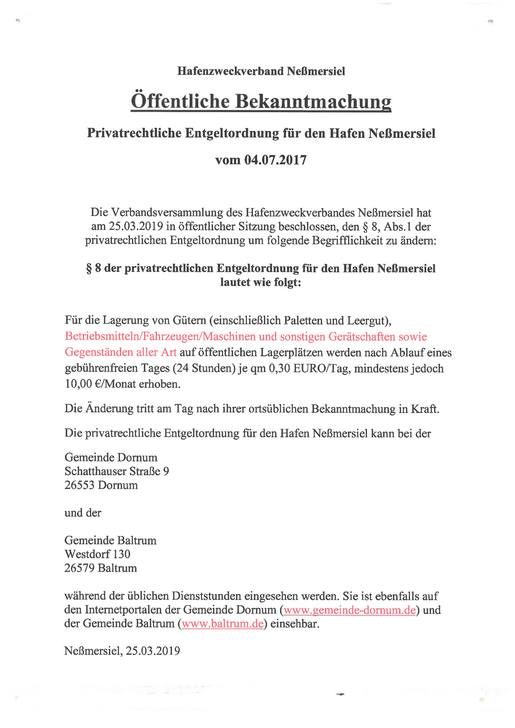 19 Aug. Hafenzweckverband Neßmersiel 08/2019 Posted at 10:09h in Hafenzweckverband, Ortsrecht by Die Redaktion 0 Likes Privatrechtliche Entgeltordnung Hafenzweckverband Neßmersiel Entgeltordnung HZV Neßmersiel 08/2019 zum Download Hafenzweckverband Entgeltordnung 08/19 Bekanntmachung 1 Datei(en) 65.56 KB Download